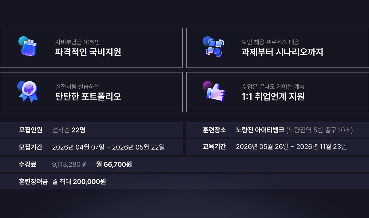 - 선택 : 수강목적, 이메일, 성별, 교육과정, 기타문의, 지점