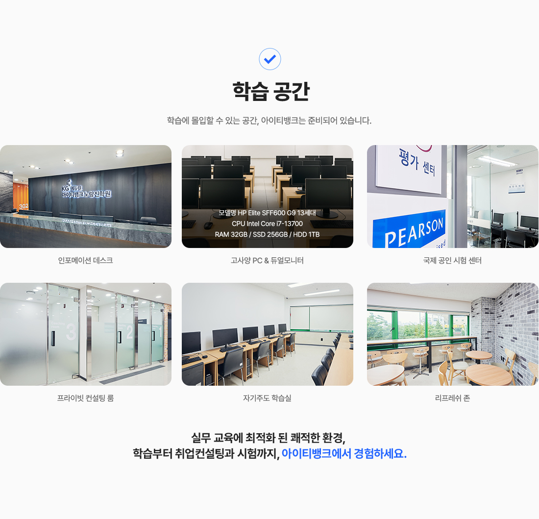 과정중에는 취업지원상담, 취업특강이 진행되며, 과정 수료 후에는 6개월간 사후취업관리를 받으실 수 있습니다.